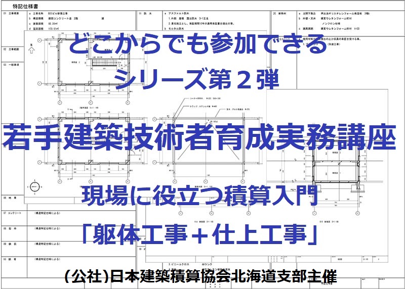 建築現場の躯体工事や仕上工事等の数量積算を、支部独自に作成した図面を使って解りやすく解説し、値入まで含めた演習問題も行う講習会を開催します。